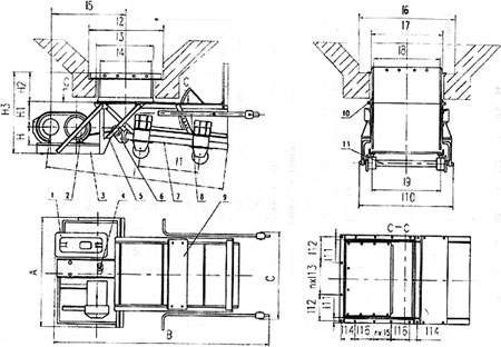 KK型往復(fù)式給煤機(jī)由機(jī)架、底板(給煤槽)、傳動平臺、漏頭號、閘門、托輥組成,當(dāng)電機(jī)開動后經(jīng)彈性聯(lián)軸器、減速機(jī)、曲柄連桿機(jī)構(gòu)拖動傾斜5度的底板在輥上作直線往復(fù)運(yùn)動,煤均勻地卸到其它設(shè)備上。本機(jī)可根據(jù)需要設(shè)有帶漏斗、不帶漏斗兩種形式。